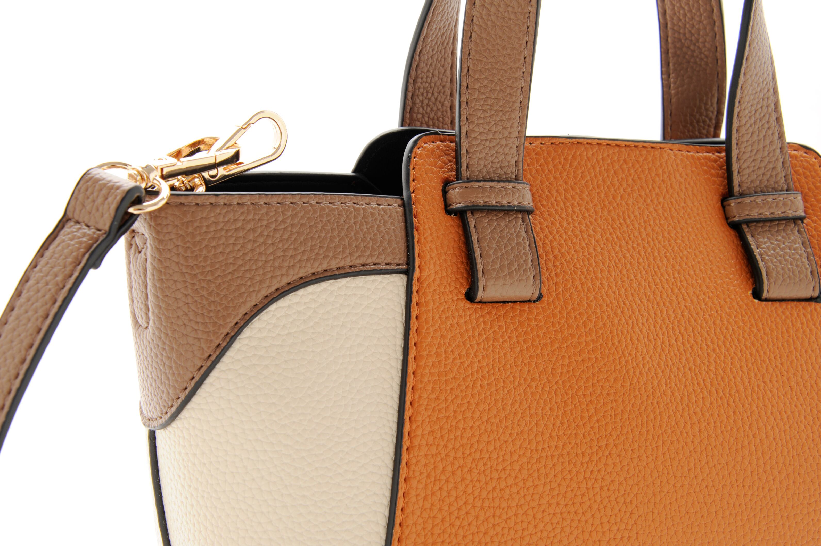 カラフルなクラフト調デザインのハンドバッグ。付属で巾着型のミニポーチがついているので、整理整頓しながら持ち歩くことができます。ミディサイズながらも、中は広々としているためたっぷり収納できます。内側にフックが付いているので、荷物の量に合わせてフォルムチェンジできます。コーディネートのアクセントになる色合いがポイント。ショルダーベルトで肩掛けや斜め掛けにもできる2WAYバッグです。